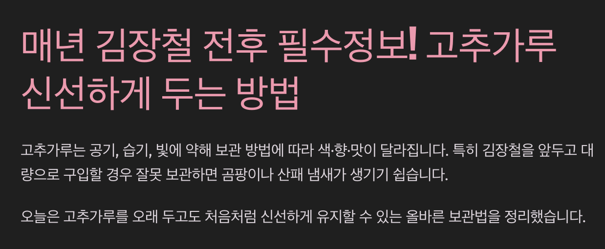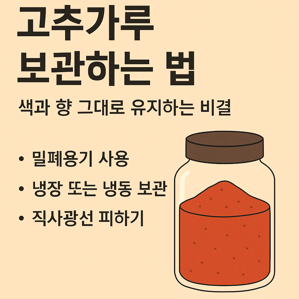 고춧가루는 공기, 습기, 빛에 약해 보관 방법에 따라 색·향·맛이 달라집니다. 특히 김장철을 앞두고 대량으로 구입할 경우 잘못 보관하면 곰팡이나 산패 냄새가 생기기 쉽습니다. 오늘은 고춧가루를 오래 두고도 처음처럼 신선하게 유지할 수 있는 올바른 보관법을 정리했습니다.