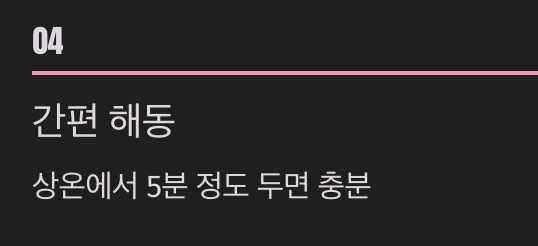 해동은 상온에서 5분 정도 두면 충분합니다.