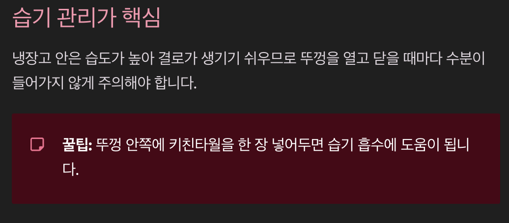 냉장고 안은 습도가 높아 결로가 생기기 쉬우므로