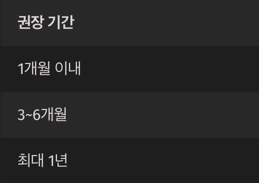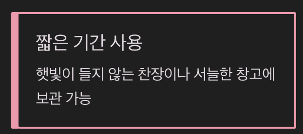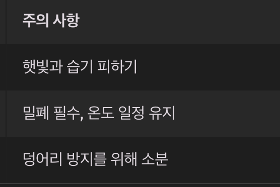 | 실온 | 1개월 이내 | 햇빛과 습기 피하기 |