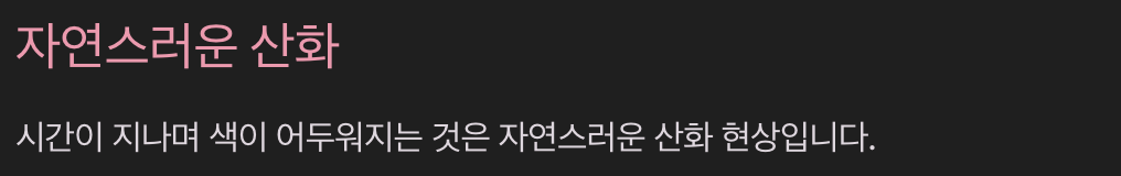 시간이 지나며 색이 어두워지는 것은 자연스러운 산화 현상입니다.