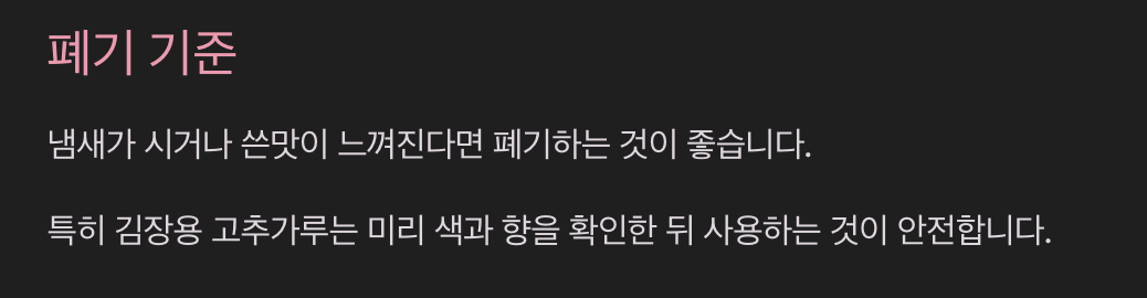 특히 김장용 고춧가루는 미리 색과 향을 확인한 뒤 사용하는 것이 안전합니다.