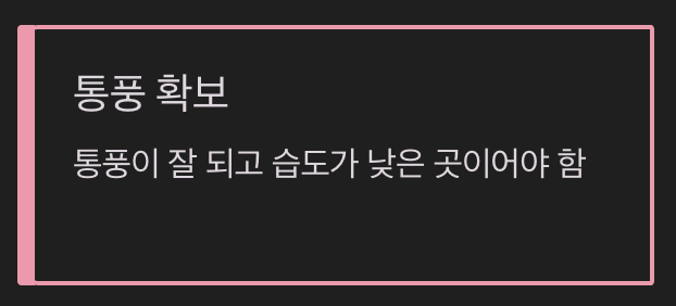 단, 통풍이 잘 되고 습도가 낮은 곳이어야 하며,