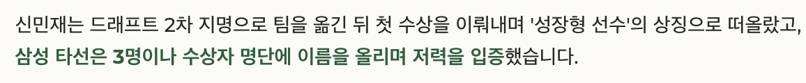 신민재는 드래프트 2차 지명으로 팀을 옮긴 뒤 첫 수상을 이뤄내며 ‘성장형 선수’의 상징으로 떠올랐고, 삼성 타선은 3명이나 수상자 명단에 이름을 올리며 저력을 입증했습니다.