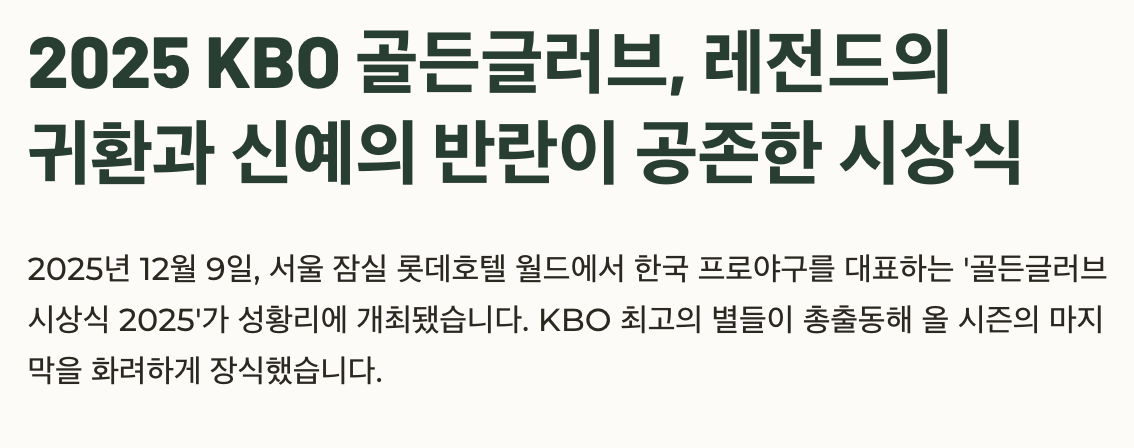 2025 KBO 골든글러브, 레전드의 귀환과 신예의 반란이 공존한 시상식