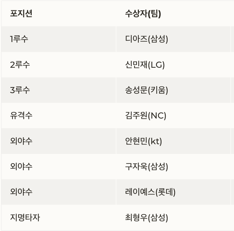 | 1루수 | 디아즈 | 삼성 |