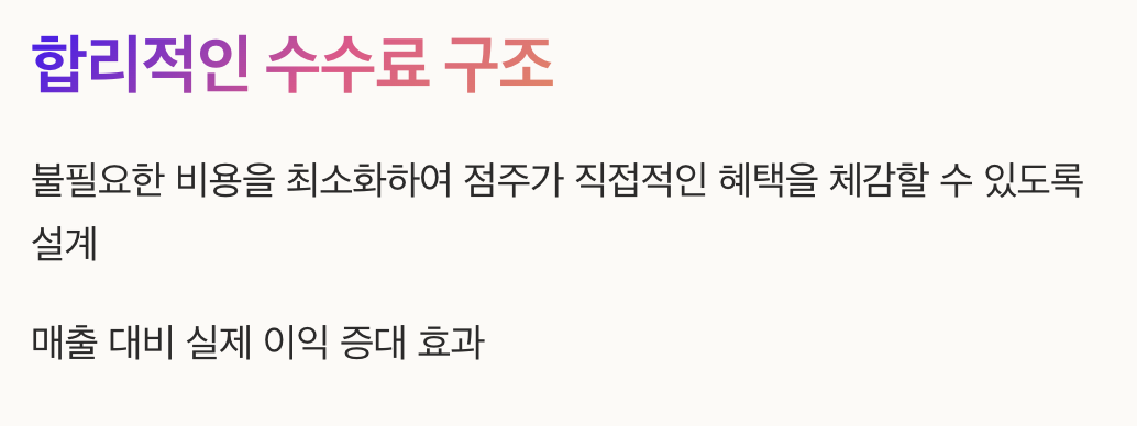 땡겨요의 가장 큰 장점 중 하나는 합리적인 수수료 구조입니다. 불필요한 비용을 최소화해 점주가 직접적인 혜택을 체감할 수 있도록 설계된 것이죠. 덕분에 매출 대비 실제 이익을 늘릴 수 있다는 점이 눈길을 끕니다.
