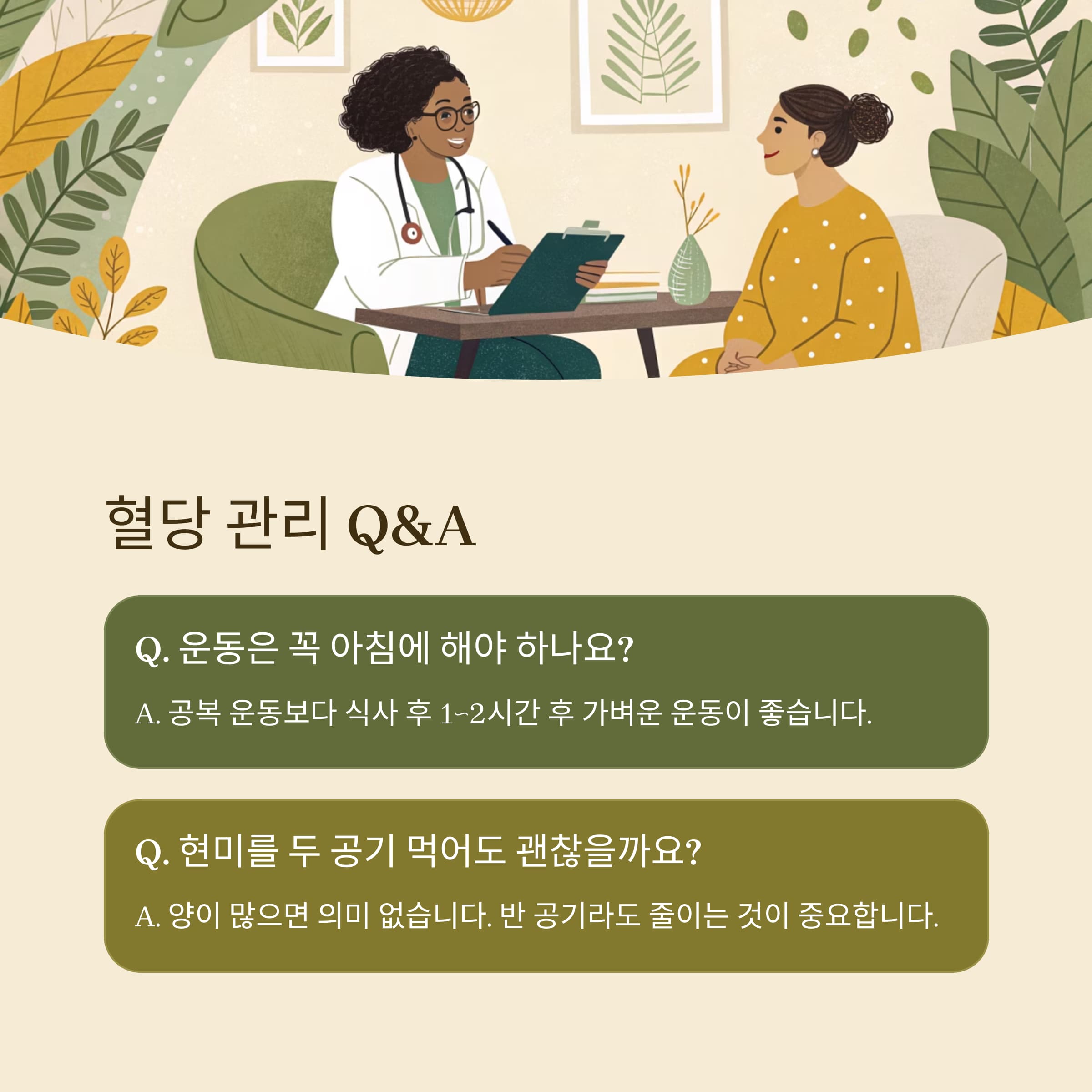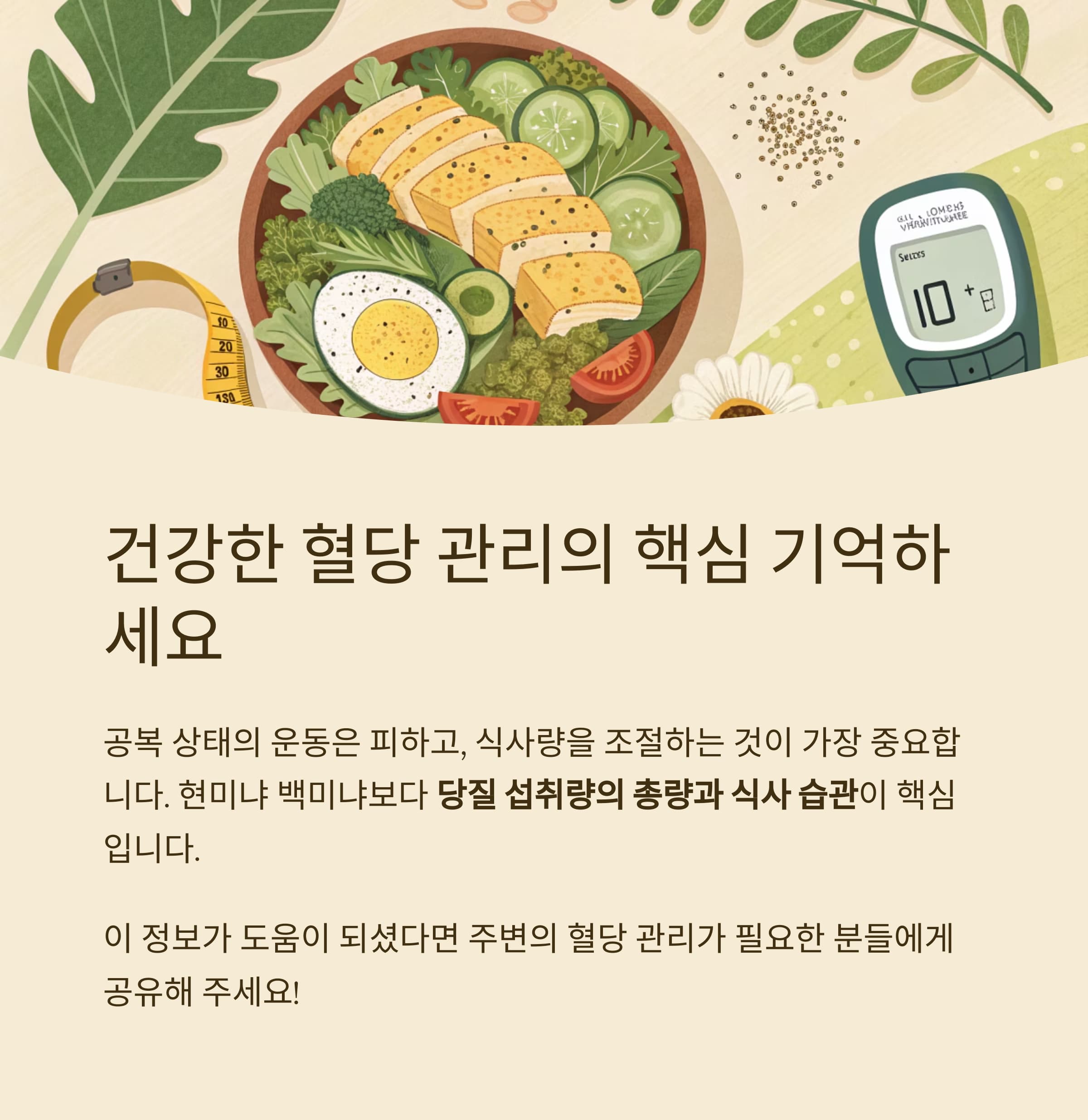 공복 운동과 식사 종류에 따른 혈당 변화에 대한 궁금증은 당뇨 예방 및 다이어트 목적의 식단 관리에서 매우 중요한 이슈입니다. 이번 포스팅은 "현미 vs 백미"와 "공복 운동"의 혈당 영향에 대한 과학적 사실을 기반으로, 건강한 혈당 관리를 위한 실질적인 해법을 알려드립니다. 혈당 조절에 관심 있는 분들이 꼭 알아야 할 핵심 정보만 담았습니다.