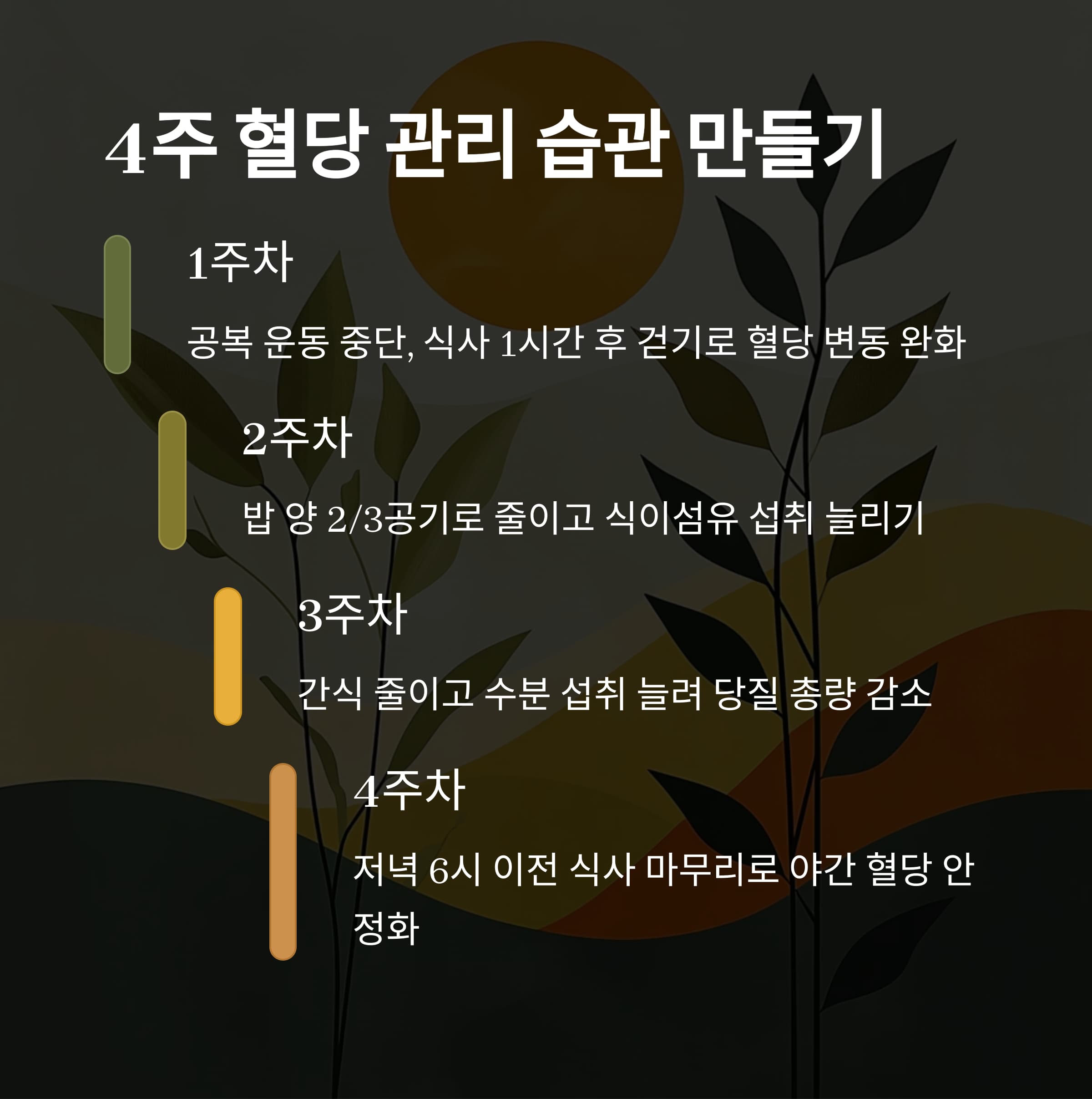 이러한 4단계 루틴을 통해 자연스럽게 혈당 조절 습관을 만들 수 있습니다.