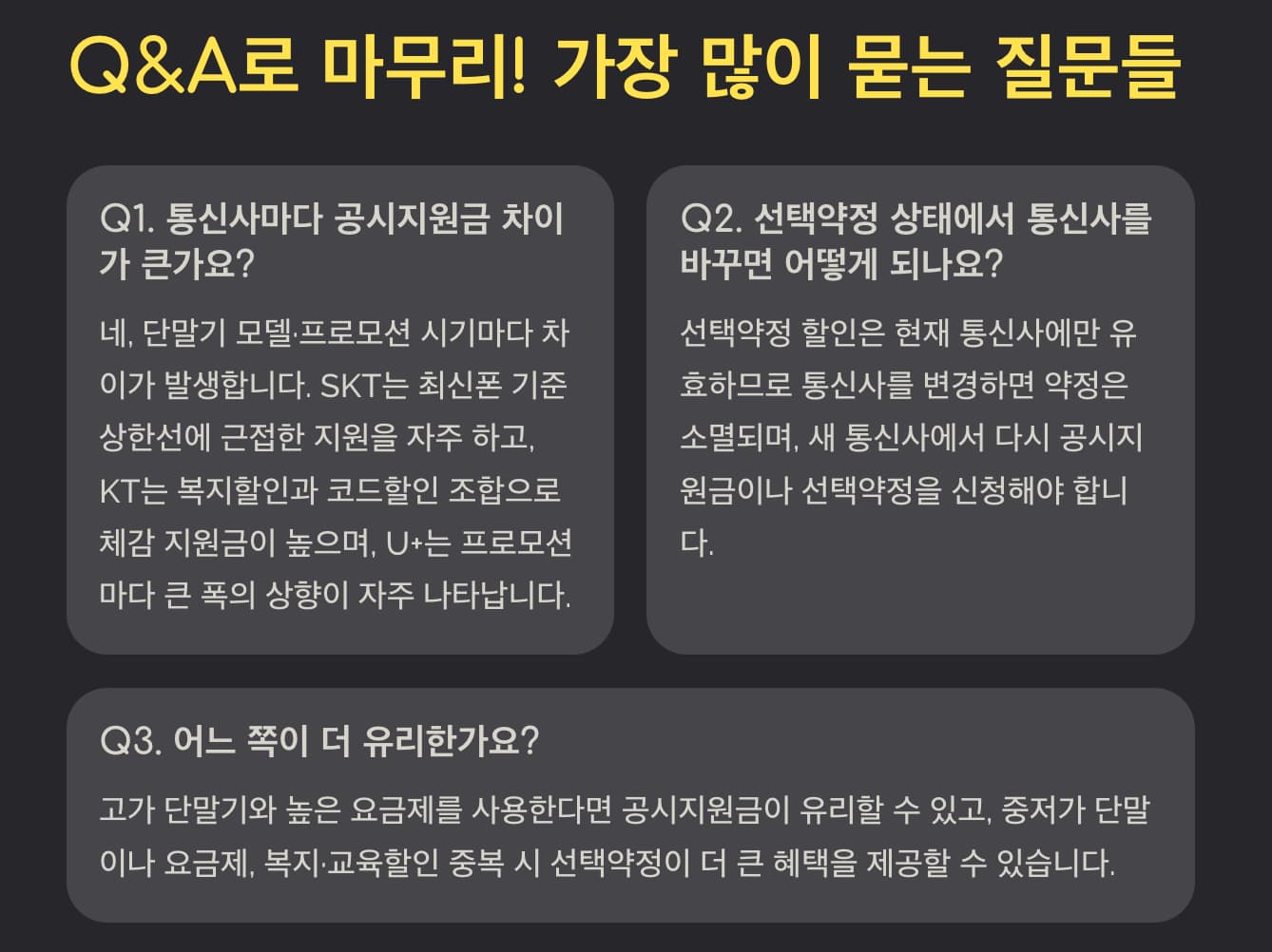 Q1. 통신사마다 공시지원금 차이가 큰가요?