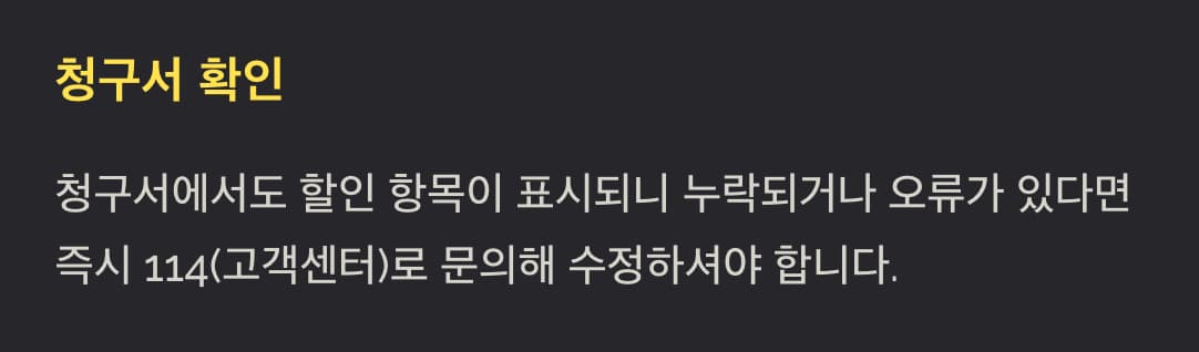 청구서에서도 할인 항목이 표시되니 누락되거나