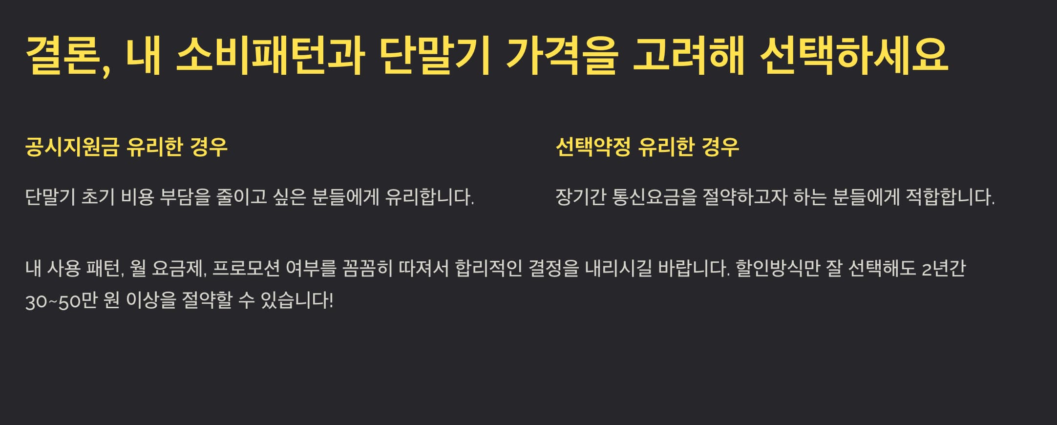 결론, 내 소비패턴과 단말기 가격을 고려해 선택하세요