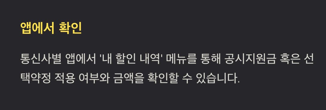 통신사별 앱에서 ‘내 할인 내역’ 메뉴를 통해 공시지원금 혹은 선택약정
