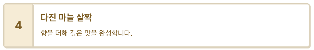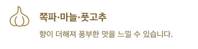 | 마늘/풋고추 | 슬라이스, 어슷썰기 등으로 준비 |