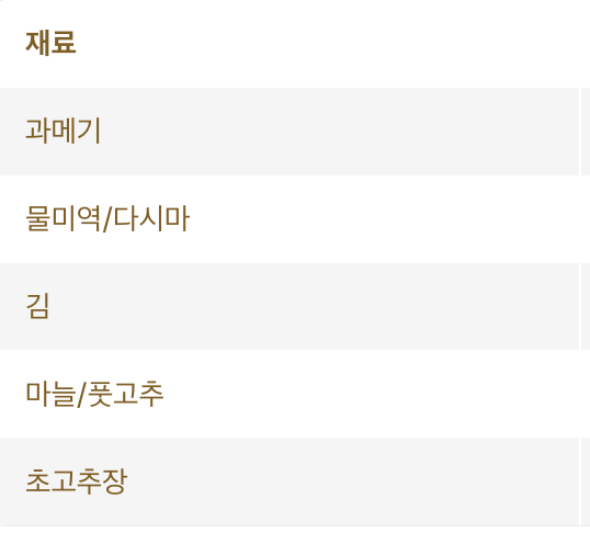 | 물미역/다시마 | 살짝 데쳐 찬물에 헹군 뒤 물기 제거 |