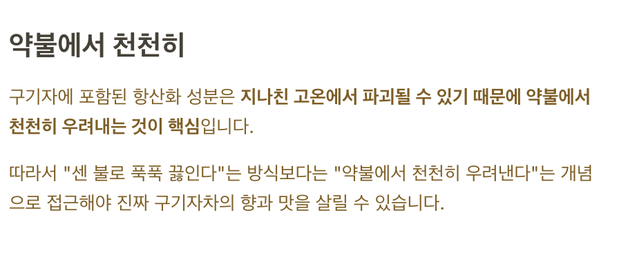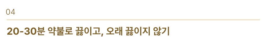 ✅ 20~30분 약불로 끓이고, 오래 끓이지 않기