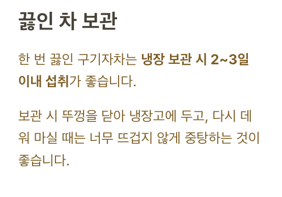 ✅ 남은 차는 냉장 보관 후 2~3일 내 마시기
