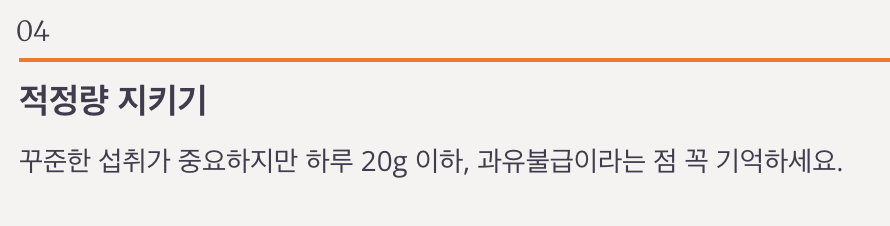 꾸준한 섭취가 중요하지만 하루 20g 이하, 과유불급이라는 점 꼭 기억하세요.
