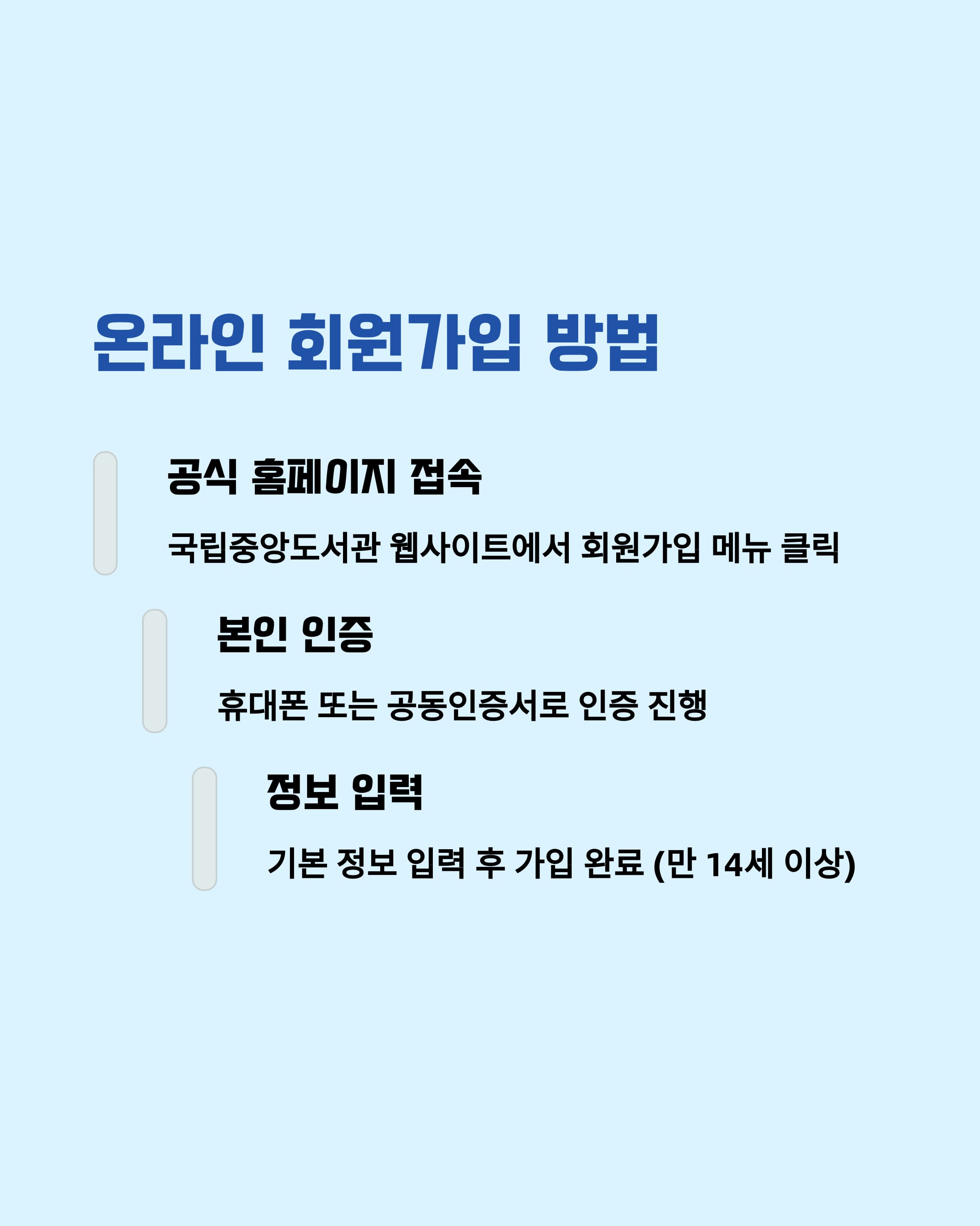 국립중앙도서관의 온라인 회원가입은 공식 홈페이지에서 간단히 가능합니다.