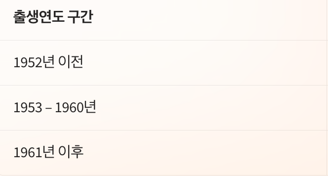 | 1952년 이전 | 만 60세 | 초기 기준 |