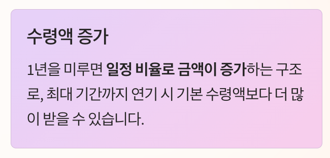 | 소득 유지 가능 | 연기 수령 | 금액 증가 | 자금 여유 | 장기 전략 |