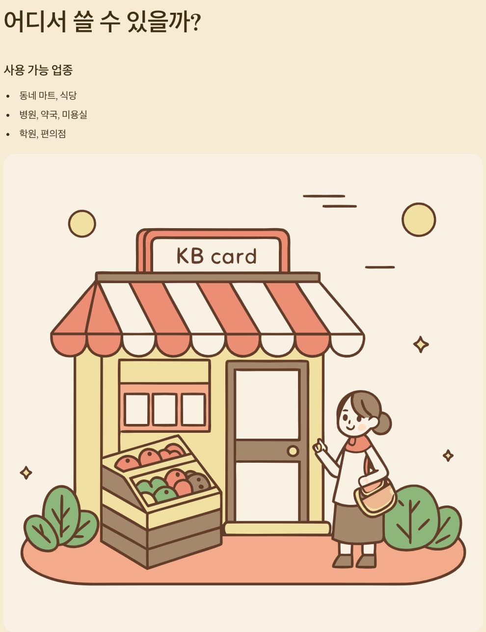 대형 마트는 제외되며, 사용 가능한 대표 업종은 다음과 같습니다.
