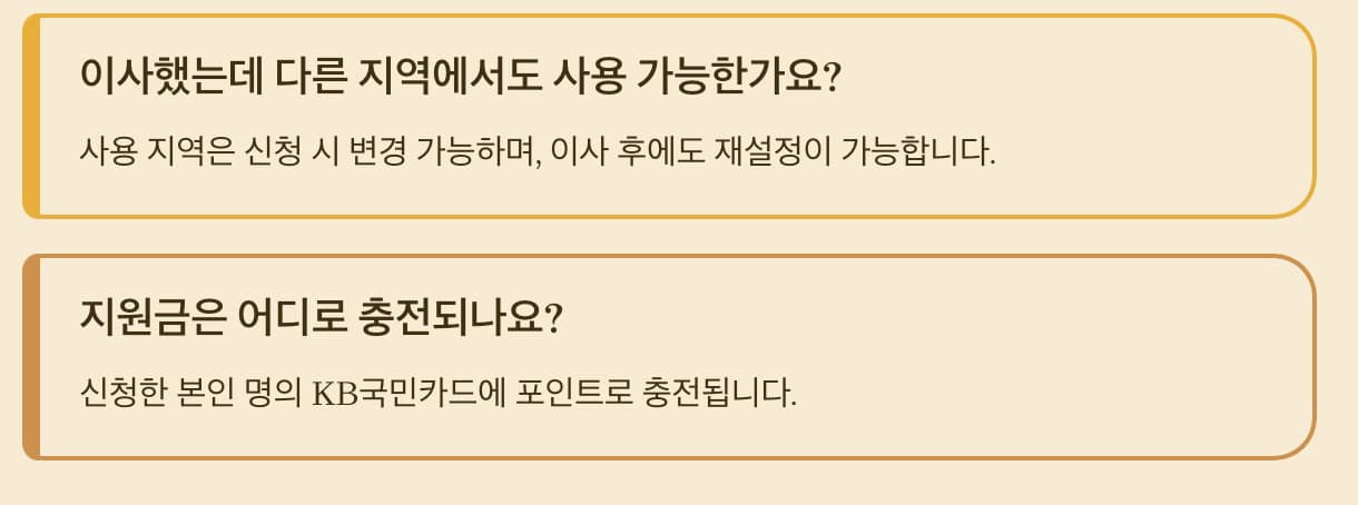지역에 따라 추가 지원금이 있는 만큼, 이사한 경우도 사용 지역을 변경해 혜택을 챙길 수 있습니다.