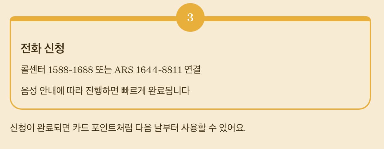 - 콜센터 1588-1688 또는 ARS 1644-8811 연결