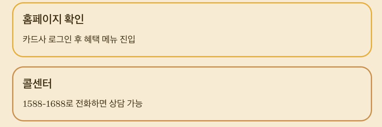 | 홈페이지 확인 | 카드사 로그인 후 혜택 메뉴 진입 |