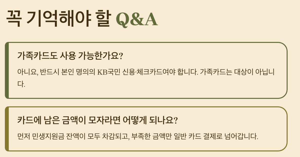 A. 먼저 민생지원금 잔액이 모두 차감되고, 부족한 금액만 일반 카드 결제로 넘어갑니다.