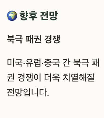 향후 미국·유럽·중국 간 북극 패권 경쟁이 더욱 치열해질 전망입니다.