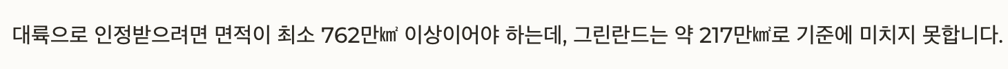 그린란드는 약 217만㎢로 기준에 미치지 못합니다.