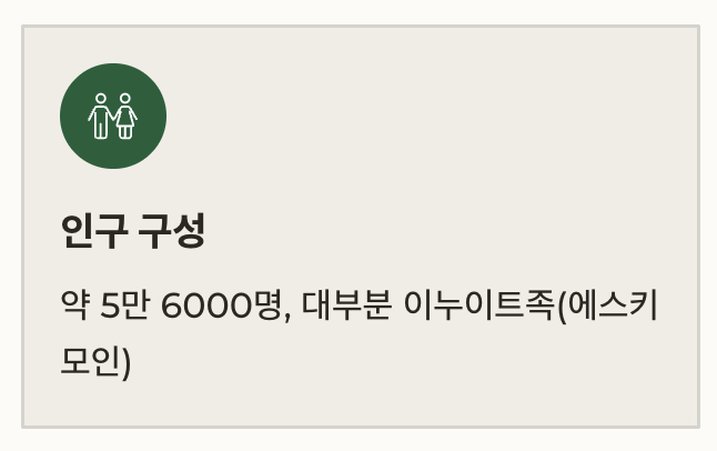 인구는 약 5만 6000명으로, 대부분 이누이트족(에스키모인)입니다.