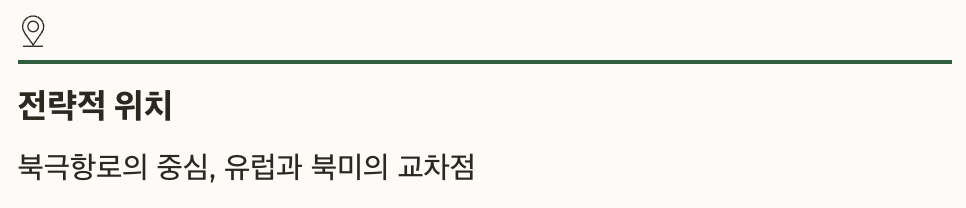 정확히 말하면 캐나다 북동쪽, 아이슬란드 서쪽, 그리고 유럽과 북미의 중간 지점에 자리한 섬이죠.