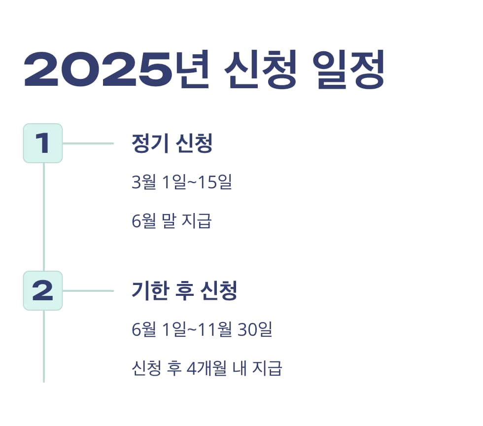 | 기한 후 신청 | 2025년 6월 1일 ~ 11월 30일 | 신청일 기준 4개월 내 지급 |