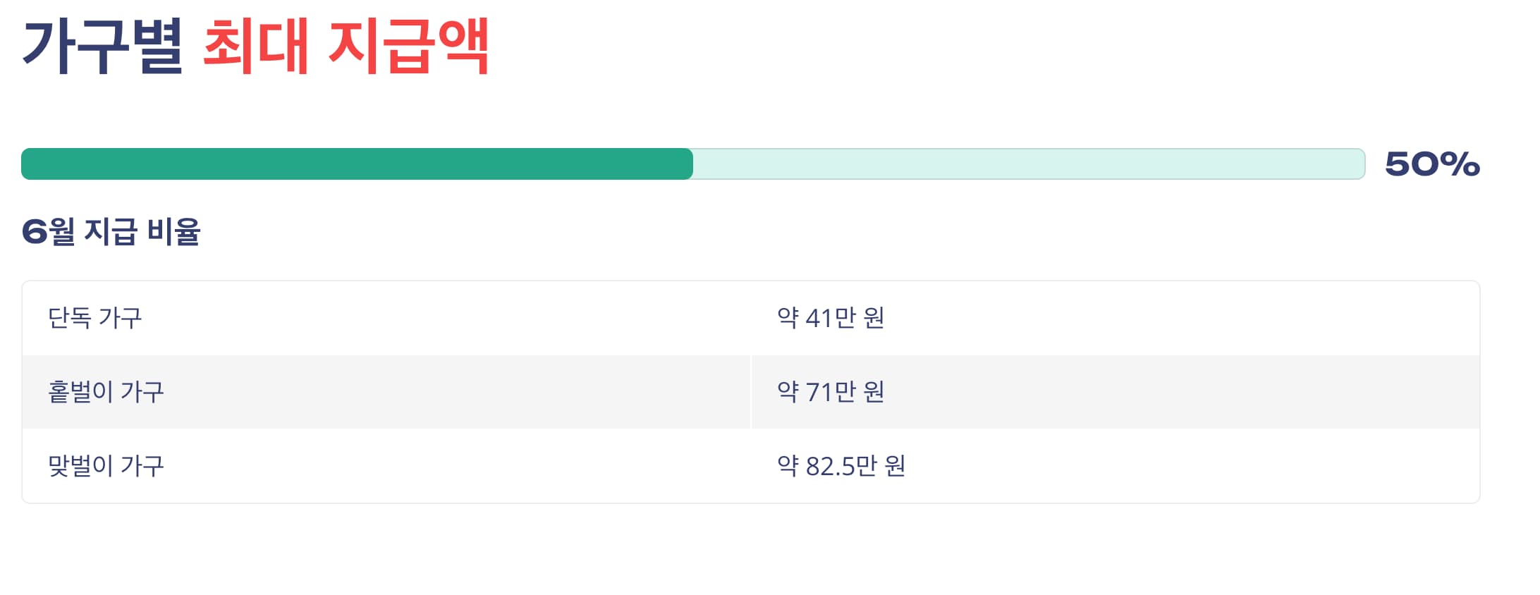 가구 유형 연간 최대 지급액 6월 지급액(50%)