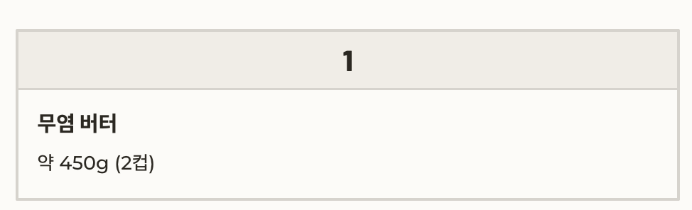 | 무염 버터 | 약 450g (2컵) |
