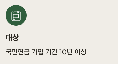 | 대상 | 국민연금 가입 기간 10년 이상 |