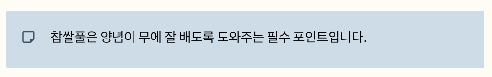 | 찹쌀풀 | 2컵 (약 400ml) | 양념 농도 유지 |