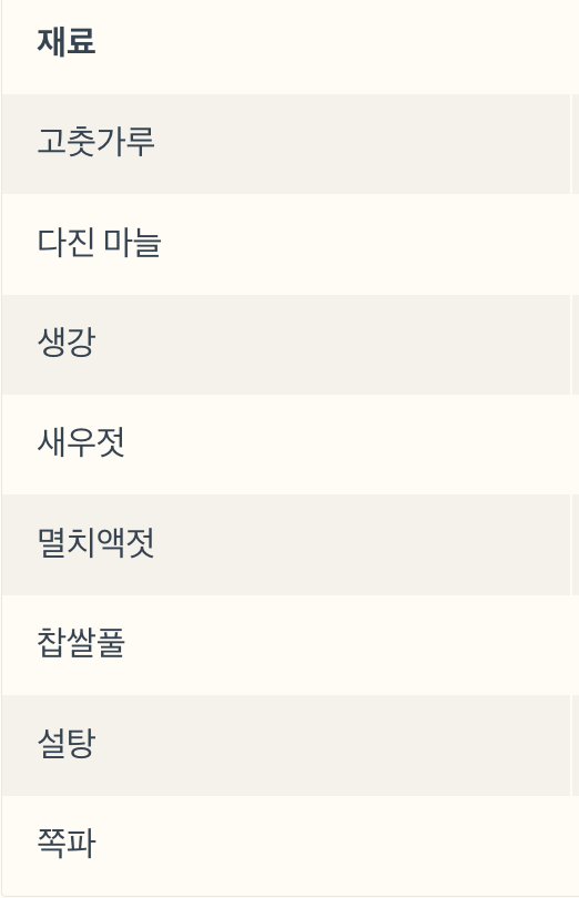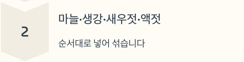 | 새우젓 | 1컵 (약 200g) | 감칠맛 핵심 |
