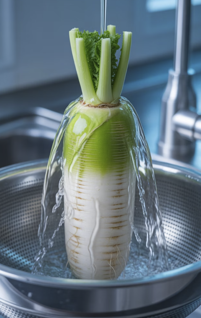 절인 알타리는 깨끗한 물로 2~3회 헹군 뒤 체에 받쳐 물기를 완전히 빼야 합니다. 물기가 남아 있으면 김치가 쉽게 물러질 수 있습니다.