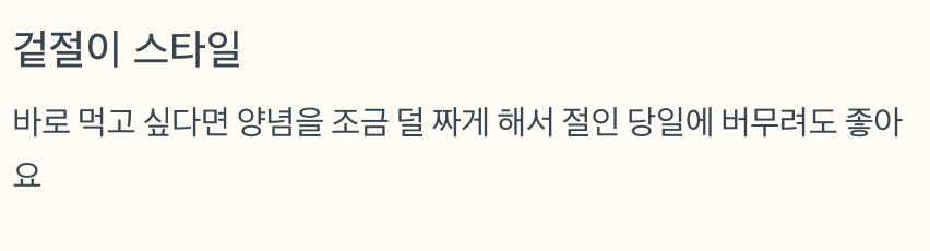 | 설탕 | 2큰술 | 단맛 밸런스 |