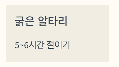 | 생강 | 2큰술 (약 25g) | 은은한 알싸함 |