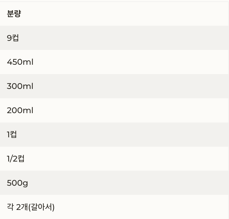 20kg 김장 기준 양념 비율은 아래와 같습니다.