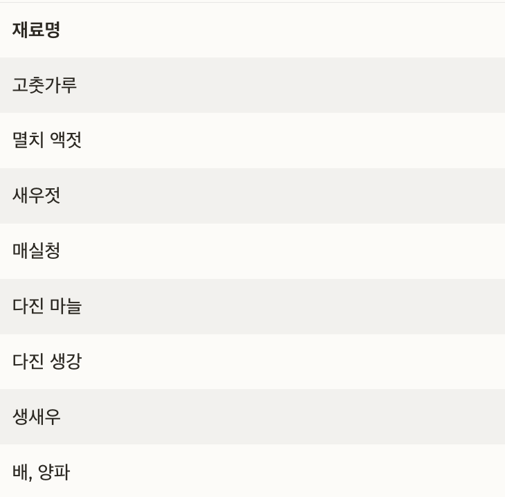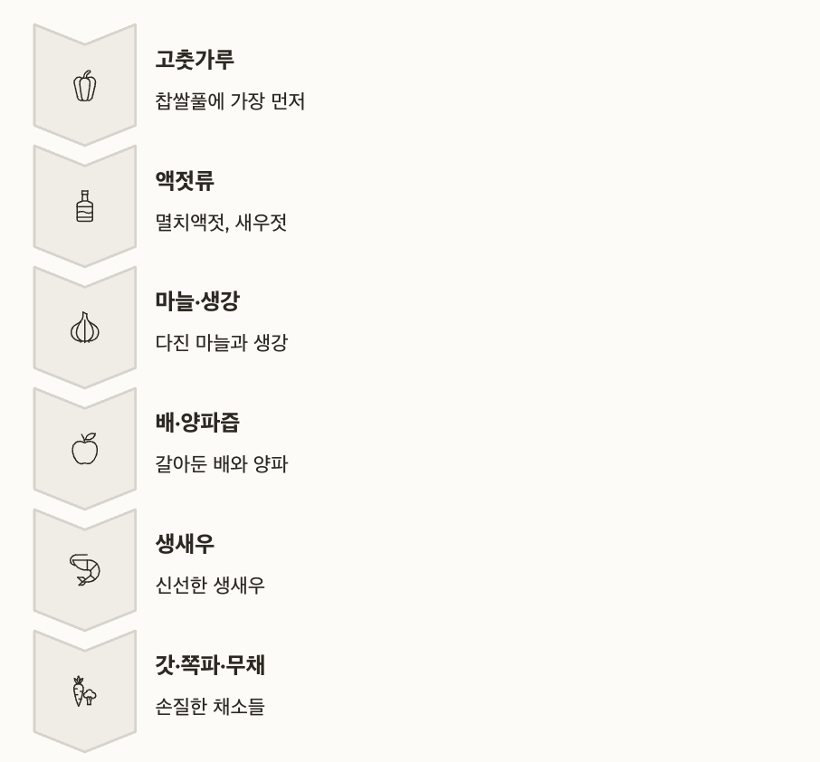 양념의 핵심은 새우젓과 생새우, 그리고 배!