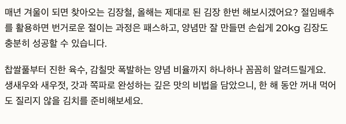 올해는 손맛 가득한 20kg 김장 성공해보세요.