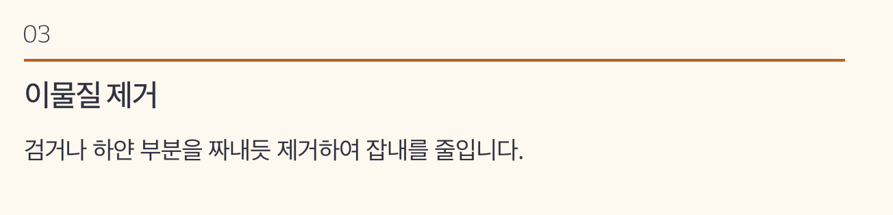 | 6단계 | 추가 세척 후 용도에 맞게 절단 |