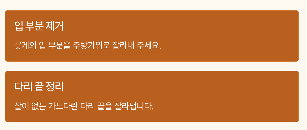 | 4단계 | 입과 불필요한 다리 끝 자르기 |