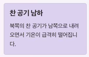 - 북쪽의 찬 공기가 남하