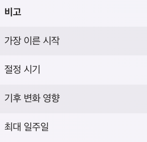 | 시작 시기 | 3월 초 |